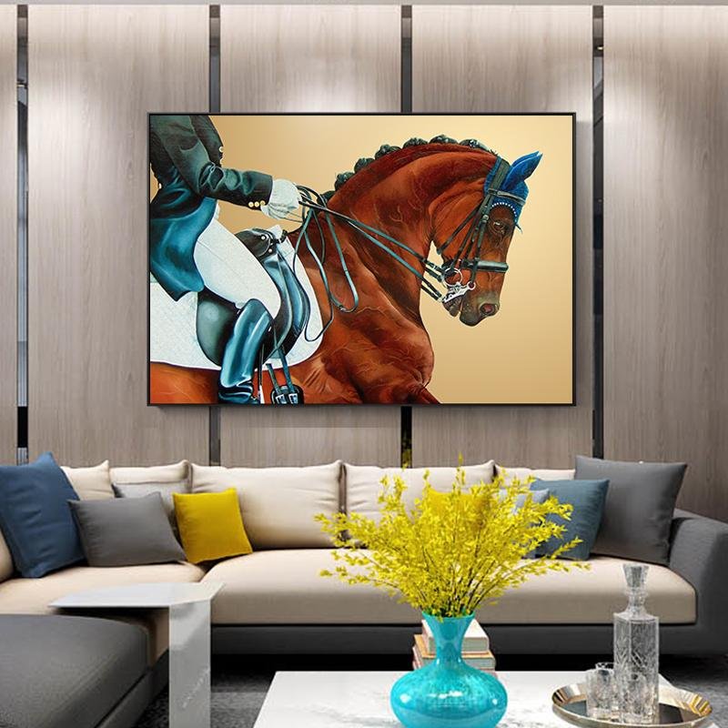 Bold and colorful wall art featuring a dynamic horse in abstract style.